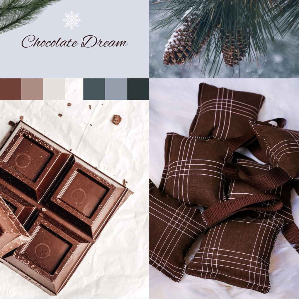 CHOCOLATE DREAM"Suklaaunelma" Limited Edition is a dark brown, smooth cotton Christmas tree decoration that is perfect for bringing warmth and softness to spaces decorated in cool tones of green and grey.